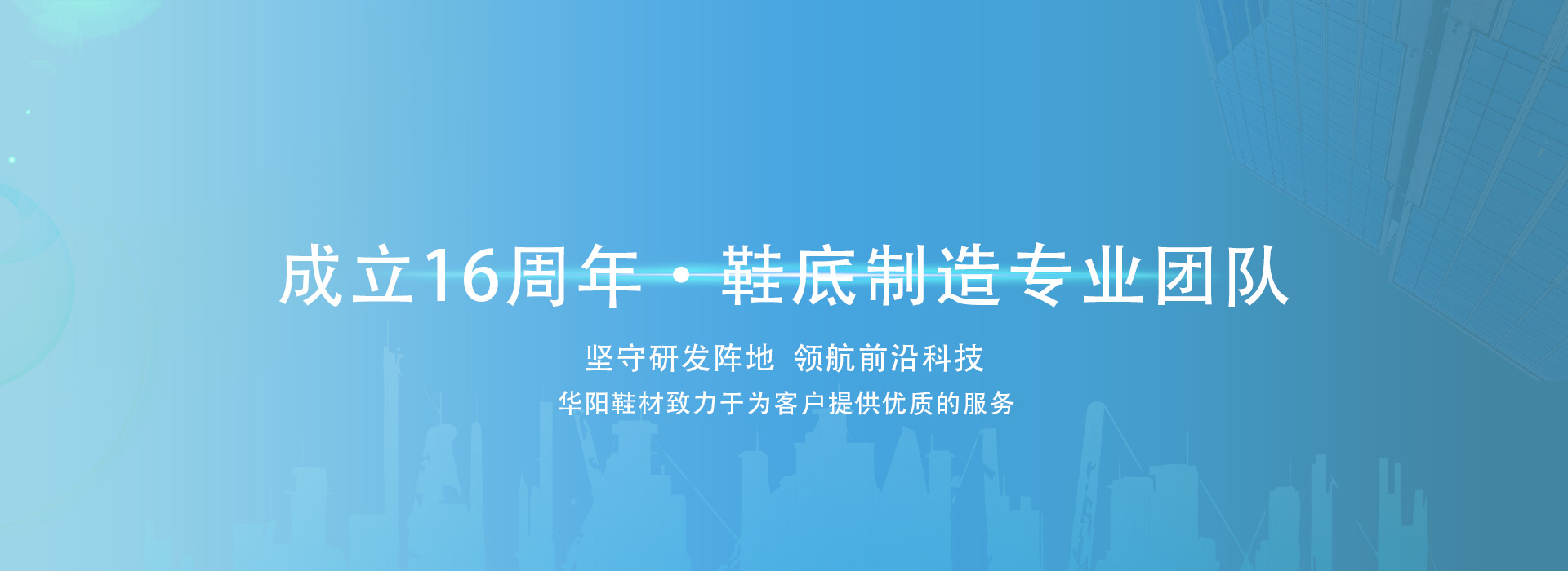 華陽鞋材于2004年成立,傳承晉江傳統(tǒng)工匠精神與現(xiàn)代化工藝技術(shù)完美融合,全面滿足客戶需求,成為國內(nèi)市場上專業(yè)的鞋底制造商之一。多年來,華陽鞋材自主研發(fā)及引進(jìn)最先進(jìn)智能生產(chǎn)設(shè)備,致力于生產(chǎn)EVA一次(IP)成型鞋底、EVA二次(MD)成型鞋底、TPR鞋底、RB(橡膠)鞋底,TPU鞋底及配件及底材組合。