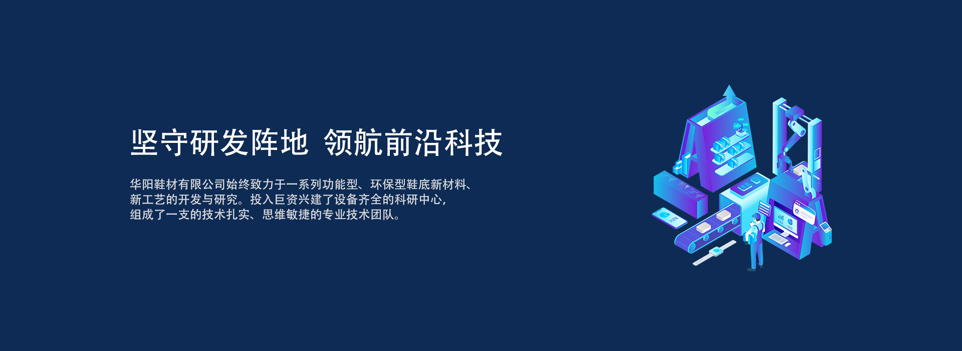 華陽鞋材有限公司始終致力于一系列功能型、環(huán)保型鞋底新材料、新工藝的開發(fā)與研究。投入巨資興建了設(shè)備齊全的科研中心,組成了一支的技術(shù)扎實、思維敏捷的專業(yè)技術(shù)團(tuán)隊。全球領(lǐng)先的材料科學(xué)分析儀器和檢測設(shè)備,形成了從材料研發(fā)、新品開發(fā)、實驗測試、技術(shù)轉(zhuǎn)移到規(guī)模生產(chǎn)的一體化作業(yè)流程,為產(chǎn)品的生產(chǎn)提供了有力的品質(zhì)保障。